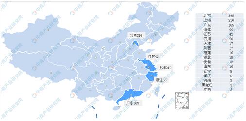 近兩年來,中國人工智能企業數量快速增長。從成立時間來看,中國人工智能創業企業的集中涌現在2012-2016年期間,并且在2015年達到頂峰,新增企業數量達到228家。2016年之后,企業數量繼續擴大,但增速有所放緩。中國人工智能企業主要集中在北京、上海和廣東三地。其中,北京人工智能企業數量多達395家,遙遙領先其他省市。此外,浙江和江蘇兩省也有較多的人工智能企業。