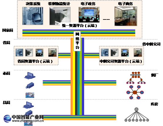 “縱”即通過構建智能、靈活的廣域網絡,提升煙草行業縱向業務承載能力,為煙草國家局、省專賣局到地市專賣局構建面向業務的縱向廣域網絡平臺。