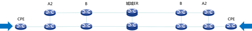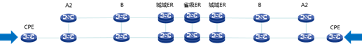 CPE設備為部署在客戶側的IPRAN設備,其他設備定義與現有IPRAN設備檔次定義一致。由于CPE設備部署在客戶側,要求設備功能簡單,便于部署。在重要的客戶局點,可以考慮CPE設備雙上聯到不同A2。