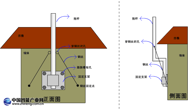 由于廠房房頂不便安裝,因此建議采用以下結(jié)構(gòu)的支架對基站進行安裝。