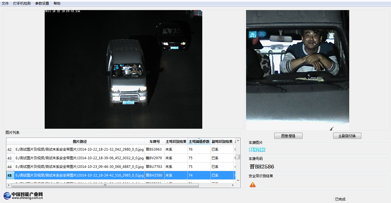 接收抓拍圖片副本和圖片信息,進行駕駛員是否系安全帶的自動檢測,并把檢測結果回傳給通信服務器。