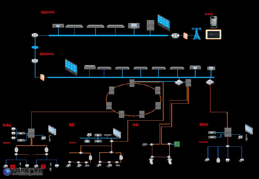 大華高速視頻監(jiān)控主要圍繞高速機(jī)電系統(tǒng)中的監(jiān)控系統(tǒng)、通訊系統(tǒng)和收費(fèi)系統(tǒng)進(jìn)行建設(shè)和設(shè)計(jì)。整個(gè)系統(tǒng)采用省中心、分中心、基層監(jiān)控單元三層管理結(jié)構(gòu)。收費(fèi)站、隧道的設(shè)備通過千兆自愈環(huán)網(wǎng)接入到各自的管理站進(jìn)行管理。外場通過千兆自愈環(huán)網(wǎng)直接接入到監(jiān)控分中心。監(jiān)控分中心可通過SDH/MSTP傳輸網(wǎng)接入到省監(jiān)控中心。