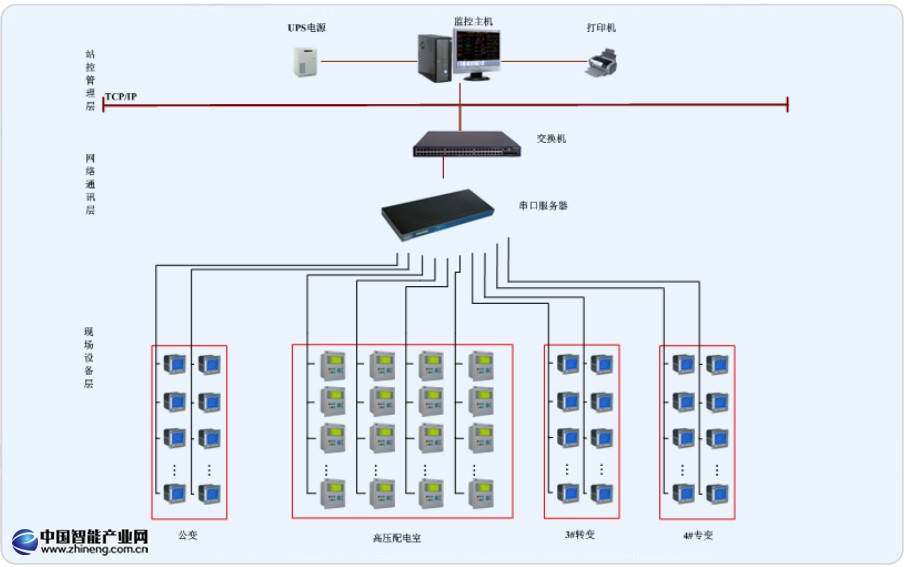 該項目由一個10KV高壓變電所,一個公變,以及兩個專變組成。該項目通過接入的21臺微機保護、50臺PZ96L-E4和兩臺溫控儀,全方位監測配電安全,保證變壓器在安全范圍內運行。通過專變和公變的同時監測,監測整個工廠的耗能情況,確定高耗能范圍,實施節能措施,筑建綠色工廠。