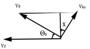 彈射座椅與飛機分離之前,獲得延導軌方向的彈射出口速度Vko,其值取決于彈射系統提供的能量。同時,座椅還有沿飛機方向飛行的慣性速度Vf。因此座椅的初始速度為二者的和速度Vo。如圖1所示為速度分析。