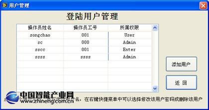 登陸界面主要提供了用戶的登錄、密碼修改以及必備按鈕,其中涉及了數據庫(Database)技術、ADO與數據庫的交互技術以及ACCESS數據庫(小型關系型數據庫管理系統),具體前面板如圖4.5所示。